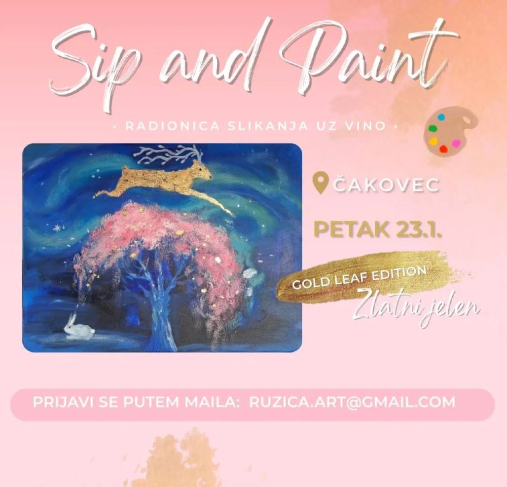 Danas slikajte uz vino u Čakovcu. Oranizatori poručuju - Opuštamo se uz čašicu vina, slikanje i dobru glazbu 23.siječnja. Slikamo bajkovitu zimsku noć, a moći će se isprobati novu tehniku - zlatni listići!