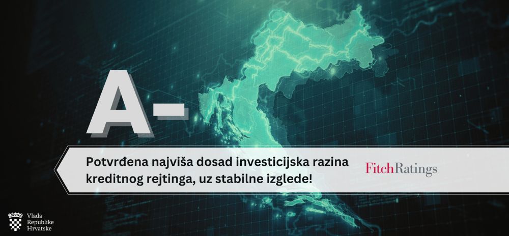 U svom najnovijem izvješću, jedna od vodećih svjetskih agencija za dodjelu kreditnog rejtinga Fitch, potvrdila je kreditni rejting Hrvatske A-, uz stabilne izglede.