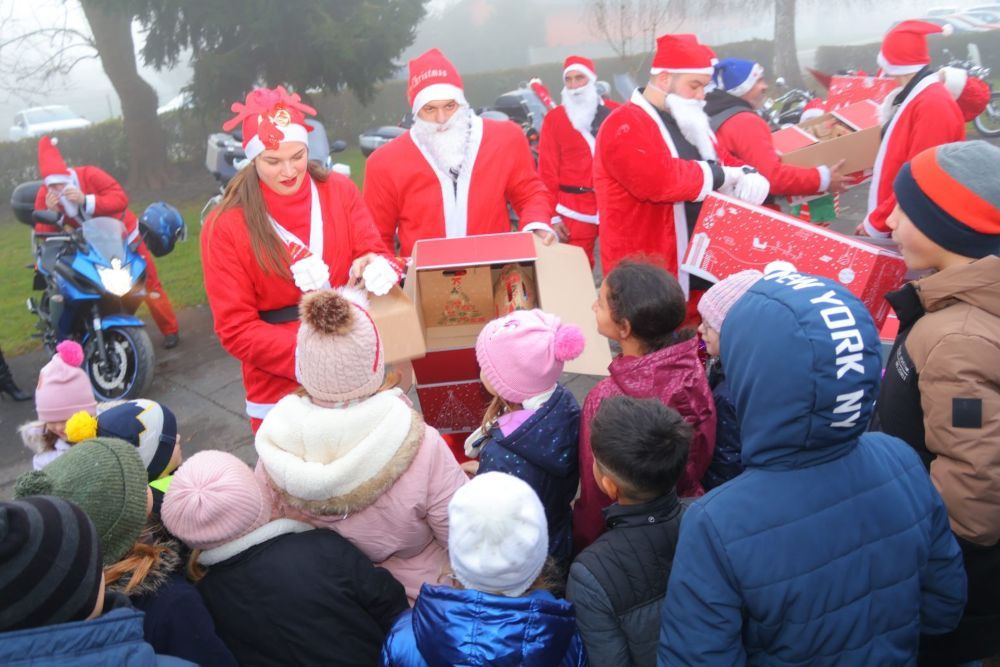 Nakon predstave, djeca i njihovi roditelji, djedovi i bake izašli su u dvorište Doma kulture, gdje je stigla povorka moto Djedova i baka Mrazova na svojim moćnim motociklima. U veseloj atmosferi, Djed Mraz je podijelio slatke pakete, koje je i ove godine osigurao Grad Čakovec.
