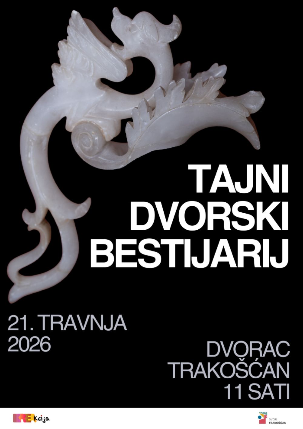 U sklopu akcije KREAKCIJA, a povodom Svjetskog dana kreativnosti u VIP dvorani dvorca Trakošćan održat će se kreativno-edukativna radionica „Tajni dvorski bestijarij“, namijenjena djeci osnovnoškolskog uzrasta. Radionica je osmišljena kao maštovito istraživačko iskustvo inspirirano prostorom dvorca. Kroz uvodnu priču i “misteriozne tragove”, sudionici će osmišljavati bića skrivena unutar dvorca, a zatim ih likovno interpretirati kombinirajući različite tehnike i materijale.