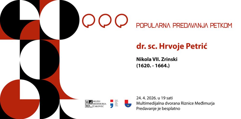 MMČ poziva - U travanjskom izdanju Popularnih predavanja petkom ugostit ćemo dr. sc. Hrvoja Petrića s Filozofskog fakulteta u Zagrebu. dr. sc. Petrić će se u predavanju posvetiti liku i djelu Nikole VII. Zrinskom, jednom od najznačajnijih plemenitaša 17.-stoljetne Europe koji je stolovao u Čakovcu.
