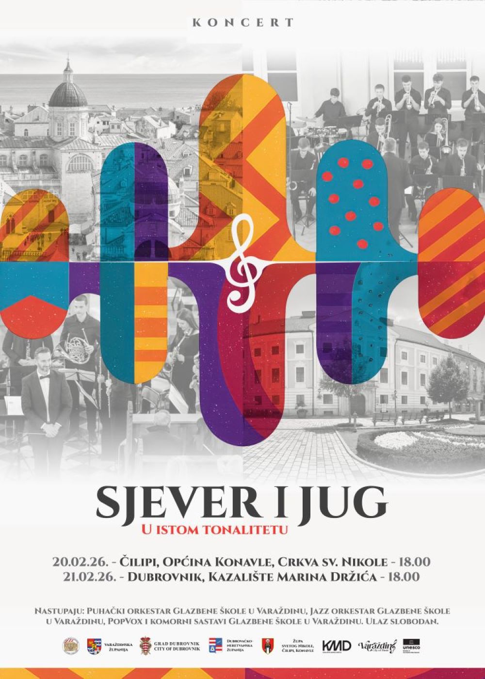 Projekt „Sjever i jug u istom tonalitetu“ u veljači 2026. godine povezat će hrvatski sjever i jug kroz dva koncerta u Čilipima i Dubrovniku, na kojima će nastupiti učenici i ansambli Glazbene škole u Varaždinu. Riječ je o glazbenom susretu koji naglašava vrijednost kulturne razmjene, glazbenog obrazovanja i zajedničkog umjetničkog jezika koji nadilazi prostorne i žanrovske granice.